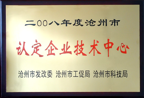 公司被認定為滄州市企業(yè)技術(shù)中心